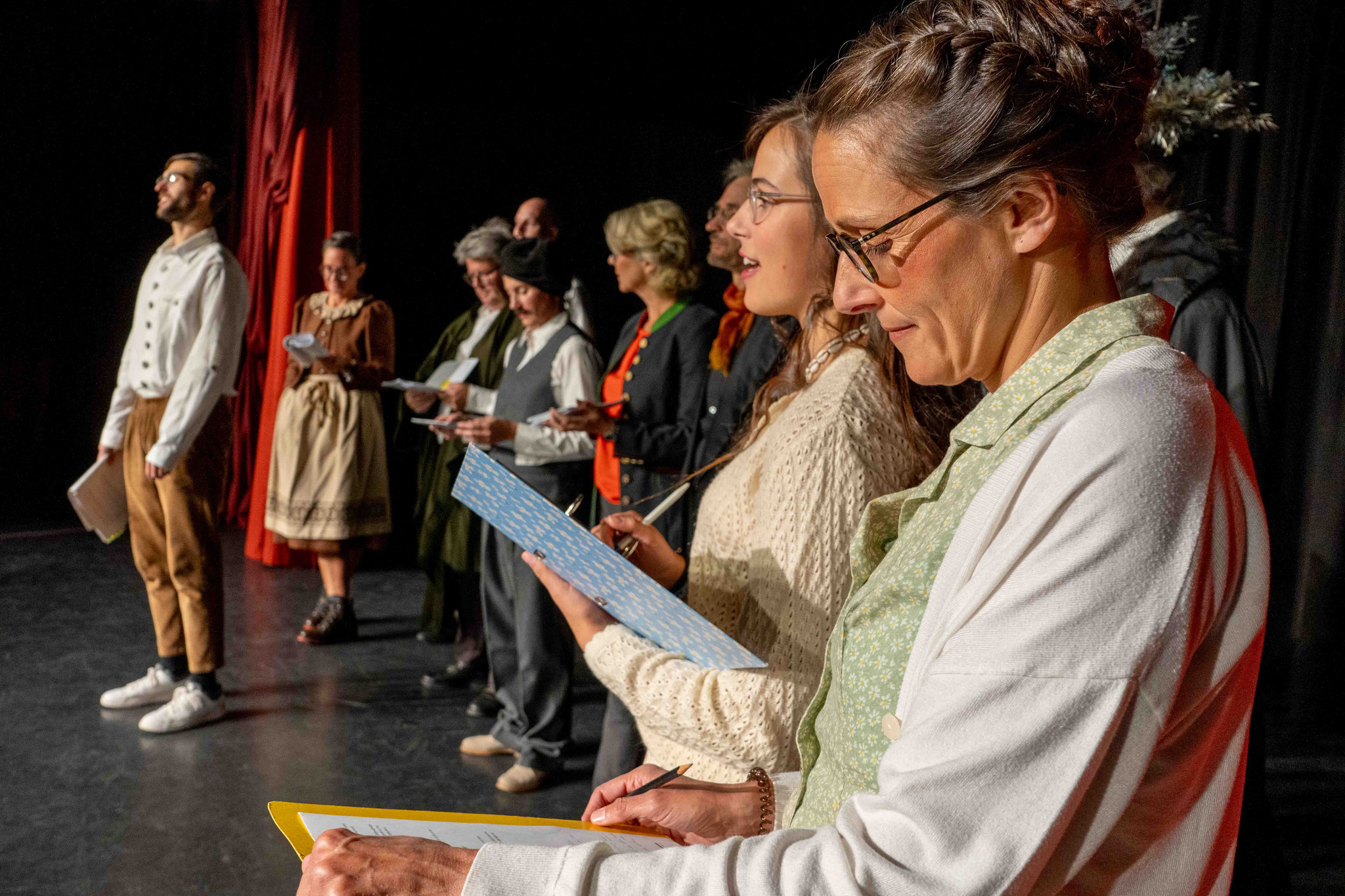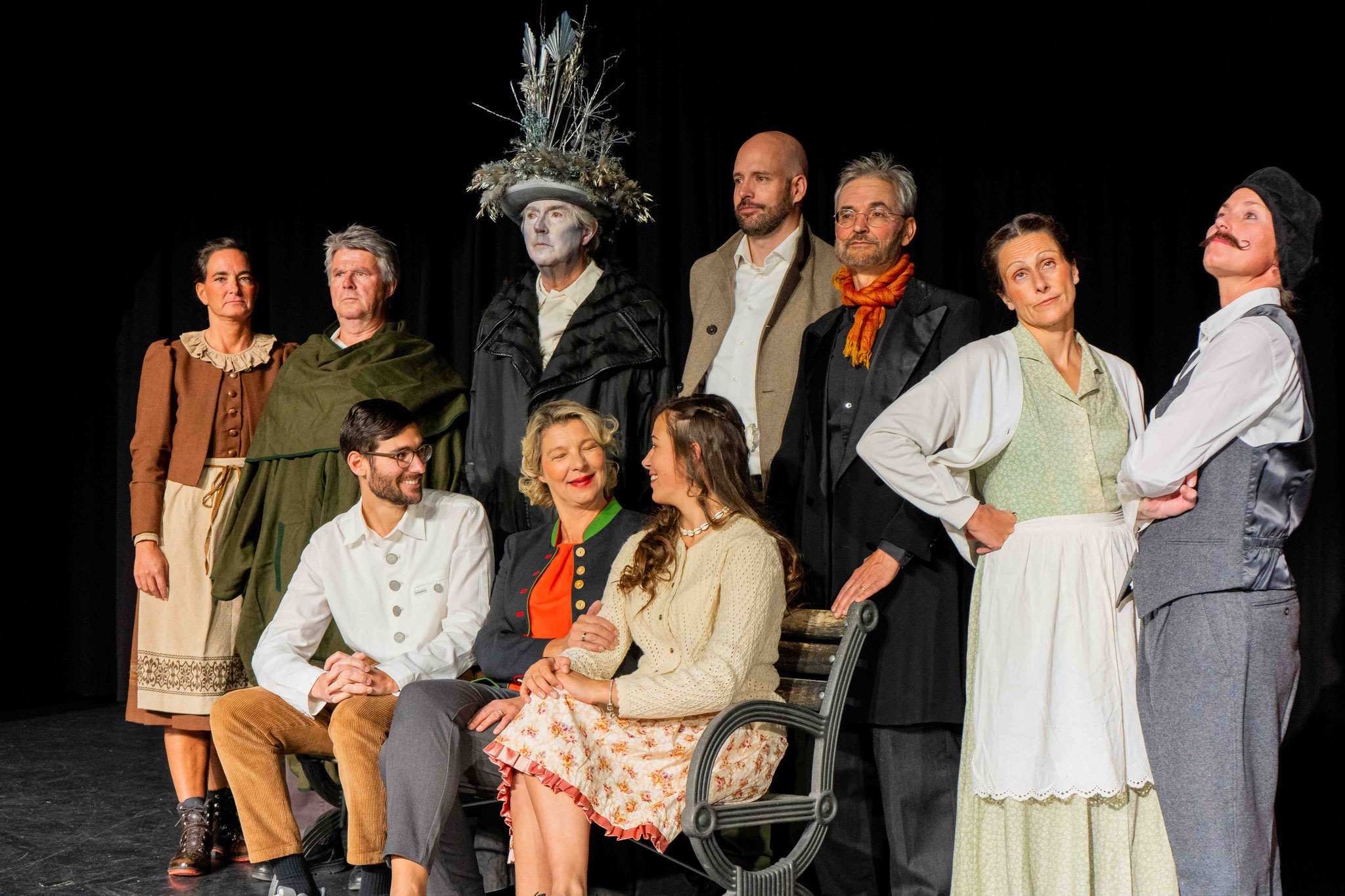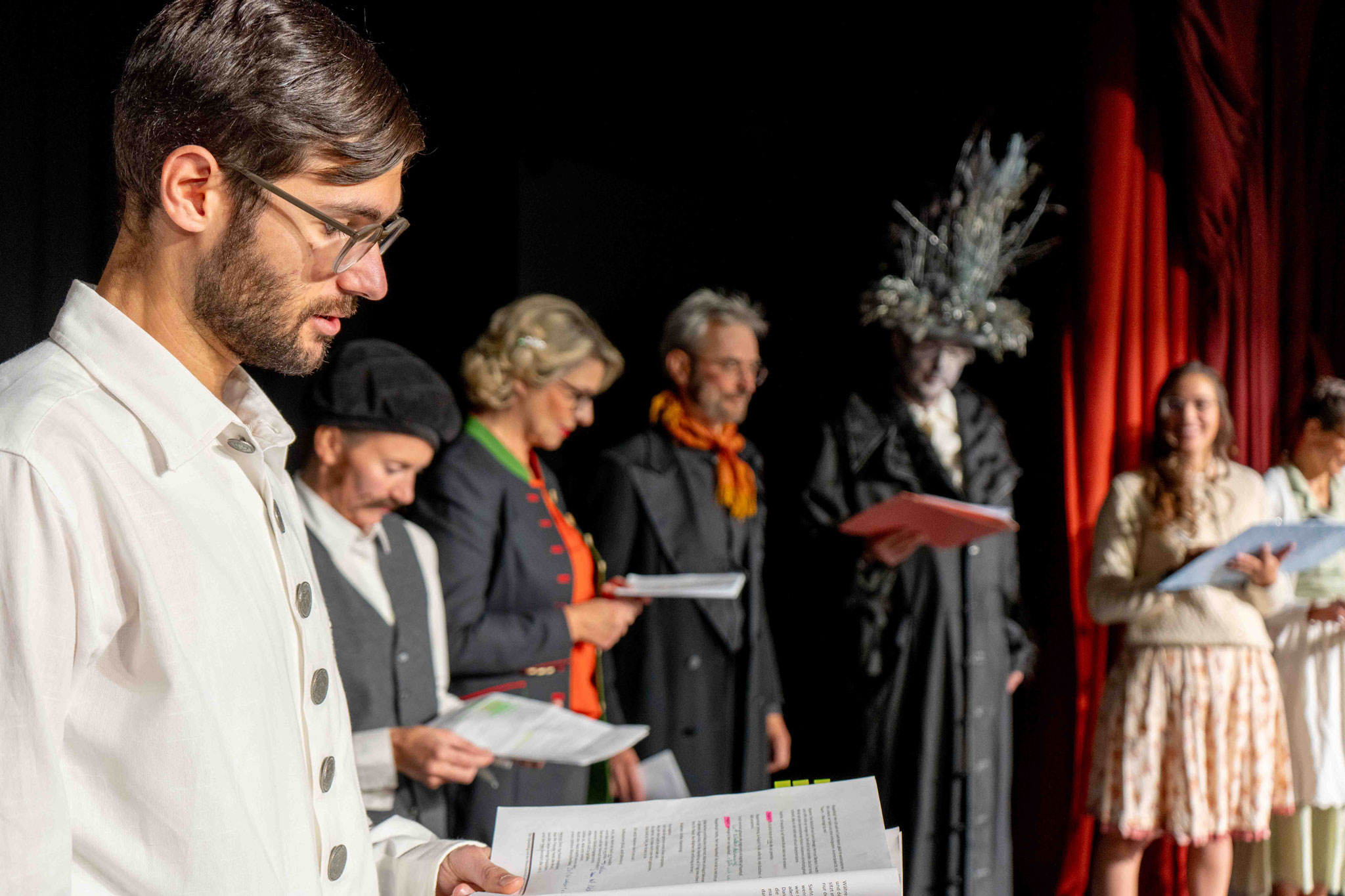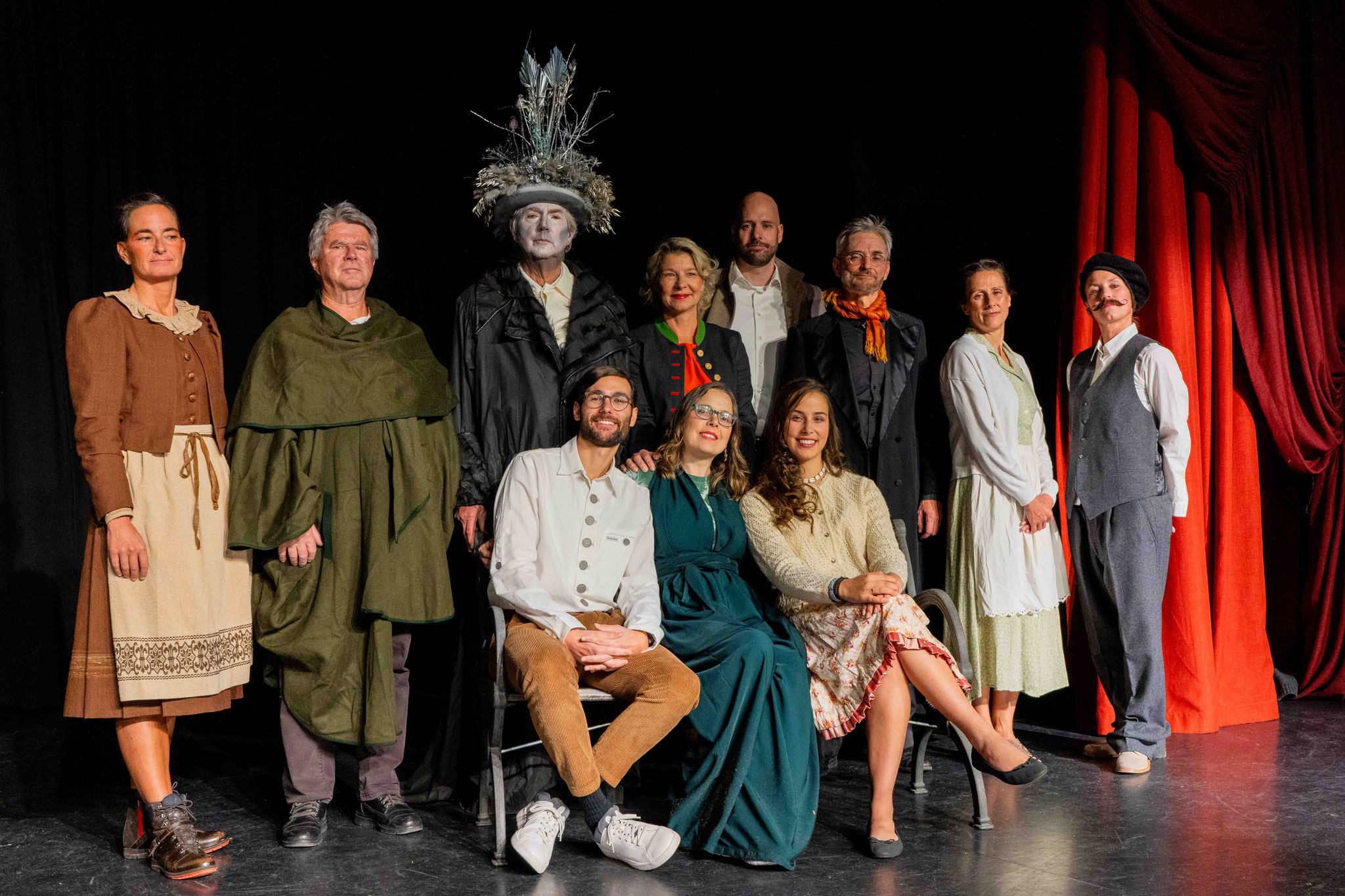 Auf der Bühne stehen Vitalina Botter, Claudia Ennemoser, Marilyn Giacometti, Angelika Kaserer, Rudolf Maag, Gioia Müller, Patrizia Müller, Roman Nendza, Lidia Poltera, Corinna Ravo, Christian Schmid, Claudia Schmid, Simon Schwarz und Franco Tramèr.