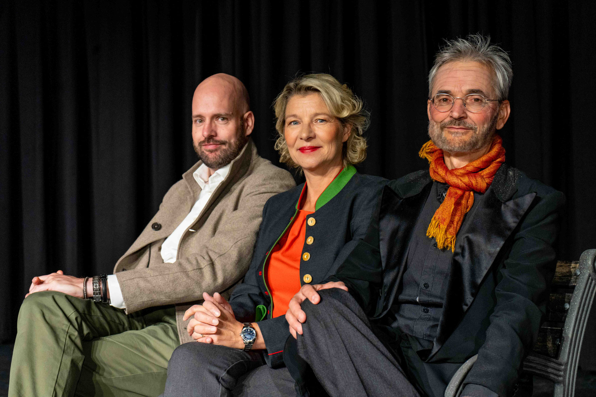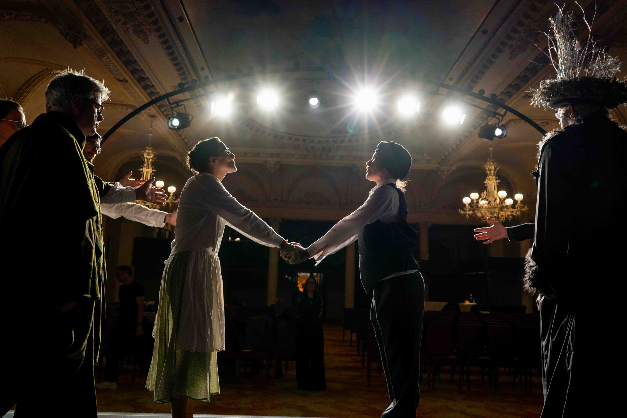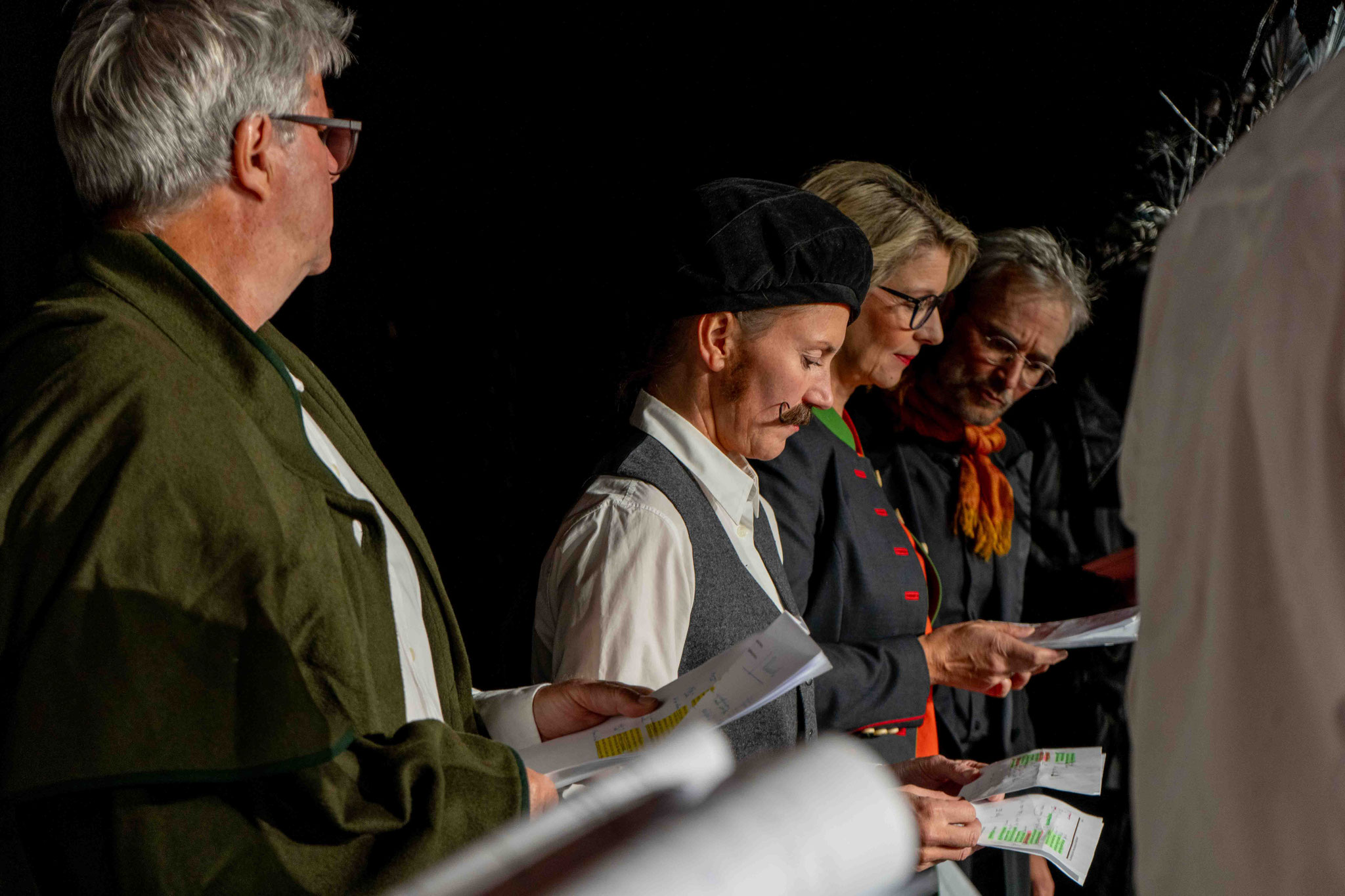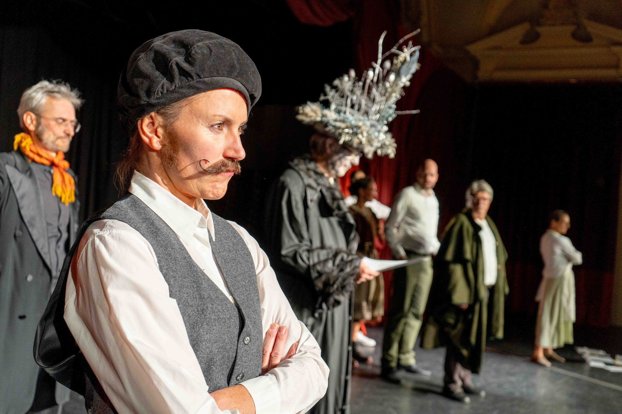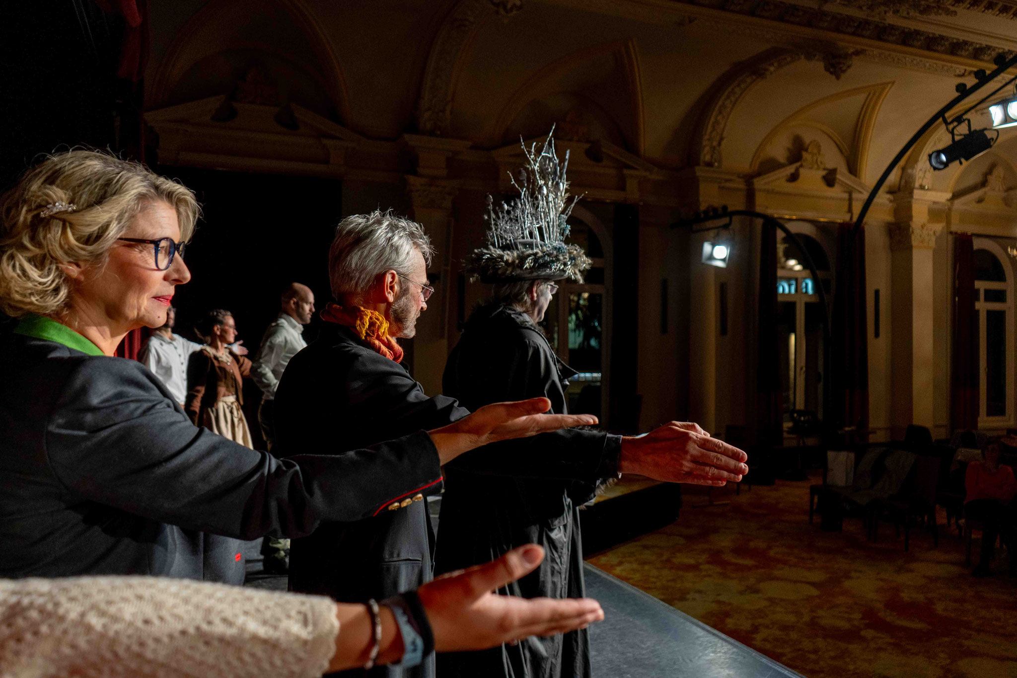 Auf der Bühne stehen Vitalina Botter, Claudia Ennemoser, Marilyn Giacometti, Angelika Kaserer, Rudolf Maag, Gioia Müller, Patrizia Müller, Roman Nendza, Lidia Poltera, Corinna Ravo, Christian Schmid, Claudia Schmid, Simon Schwarz und Franco Tramèr.